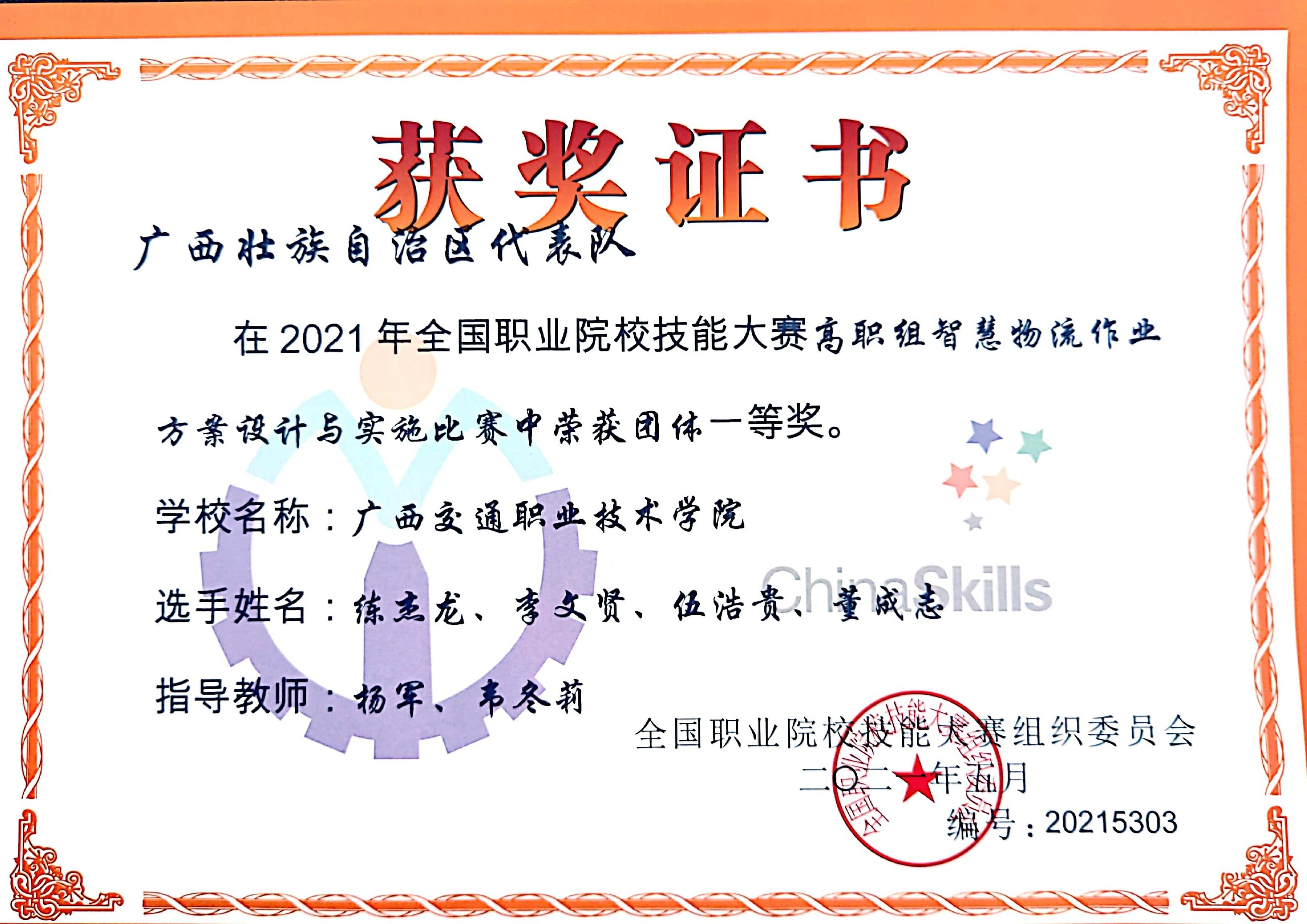 (经济管理学院 讯韦珍妮/文 袁斌/图)6月19日下午,从天津传来捷报,由我院院长杨军、教师韦冬莉、赵继新、庄惠子、袁斌、高晓莎指导,物流管理专业练杰龙、李文贤、伍浩贵、董成志四名同学组成的我校参赛队代表广西出征,在2021年全国职业院校技能大赛(高职组)《智慧物流作业方案设计与实施》赛项中,以总分第2的好成绩获得全国一等奖。这是我校继2018年首次获得该赛项全国一等奖后,在全国职业技能竞赛改革后,再次斩获该赛项全国一等奖。