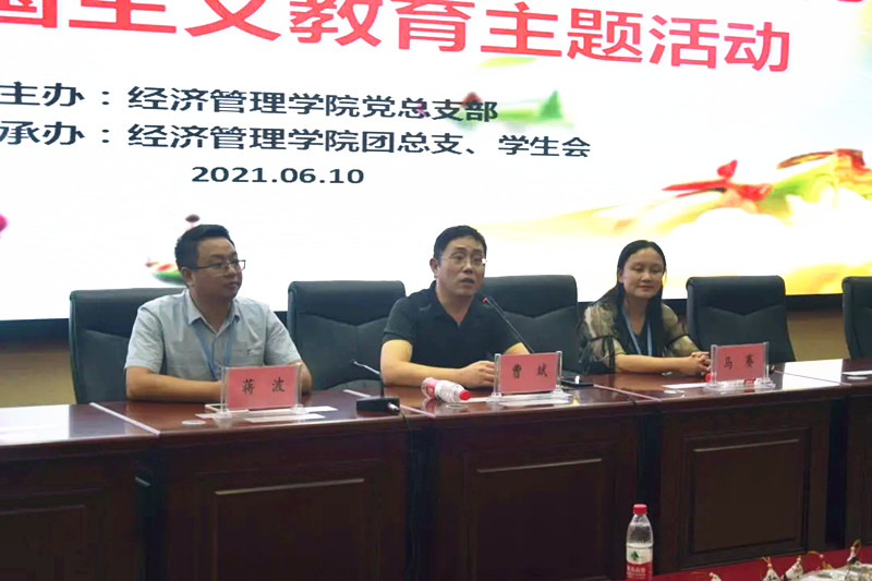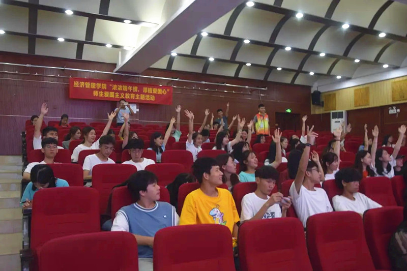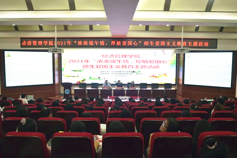 (经济管理学院讯韦珍妮/文、图)缤纷夏日,浓情端午。为弘扬端午节传统文化,赓续和传承爱国主义精神。6月10日下午,由经济管理学院党总支部主办,团总支、学生会承办的“浓浓端午情 厚植爱国心”师生爱国主义主题教育活动在昆仑校区综合教学楼第一学术报告厅顺利举行。学院党总支部书记曹斌、院长杨军、党总支部副书记蒋波及学院教师代表和各班级学生代表共计200余人参与了此次活动。