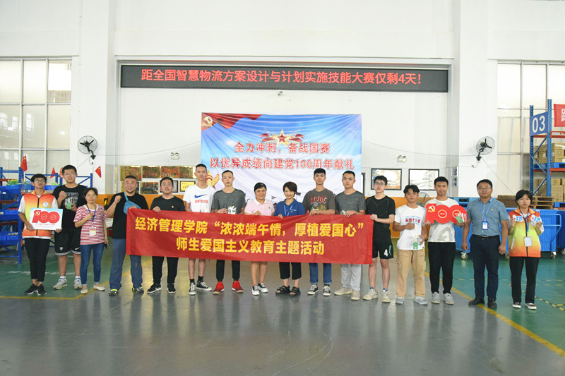 在物流实训基地里,曹斌书记、杨军院长、蒋波副书记为即将参加国赛的师生团队送上了同学们特别制作的香囊,为选手们加油鼓劲,预祝选手们在国赛中取得优异的成绩,为校争光。