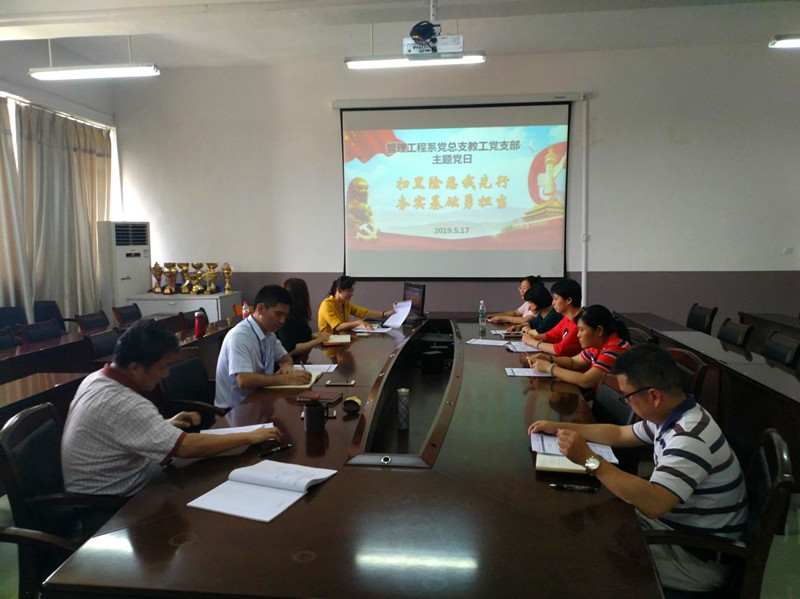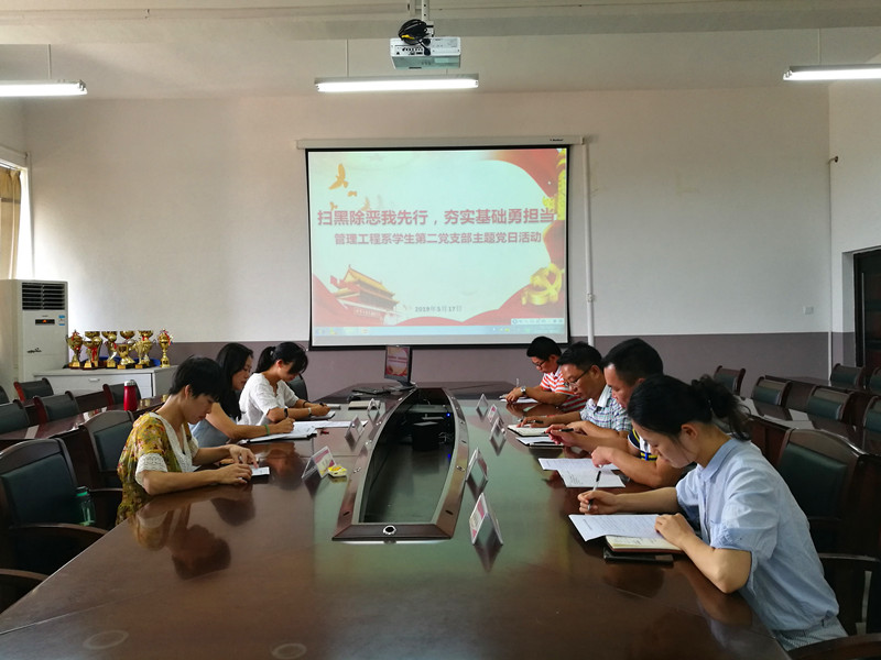 (管理工程系讯蒋波/文/图)5月17日,由系党总支牵头组织,分支部召开的“扫黑除恶我先行 夯实基础勇担当”主题党日活动分别在管理楼316会议室、312党员活动室举行,教工党支部、学生第一、二党支部全体教师党员、部分学生党员、入党积极分子代表参加了活动。