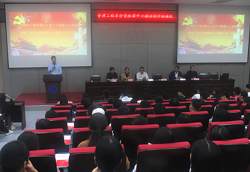 (管理工程系 讯蒋波、耿兴云/文 李游/图)11月11日上午8:10,管理工程系党总支第十六期分党校培训班开班仪式在昆仑校区综合教学楼第二学术报告厅隆重举行,出席本次开班仪式的有系党总支书记龙建强、党总支纪检委员李钊、党总支宣传蒋波以及学生第一党支部书记陈飞霞、学生第二党支部书记耿兴云、教工党支部宣传委员李倩,以及190余名党校学员参加了开班仪式。