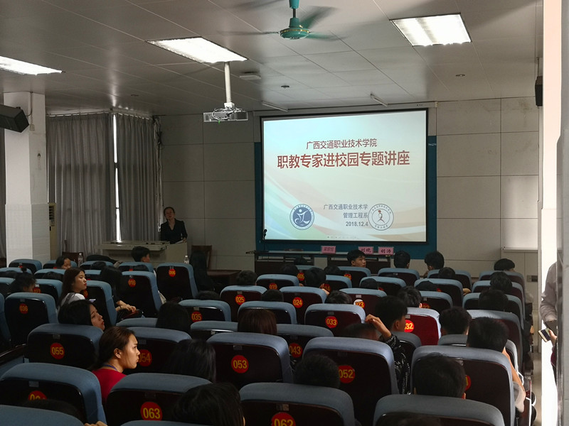 (管理工程系讯贲绍云/文、图)为更好地帮助中职学生了解专业、行业发展情况,以及合理的规划学习和今后的职业生涯,12月5日,管理工程系组织骨干教师赴广西交通运输学校和广西交通技师学院开展“职教专家进校园”主题宣讲活动。参与本次活动的老师有韩海燕、李倩、李卓丹、胡涛、贲绍云、刘晓、梁玥悦、刘鸿雁、庄惠子等九位。