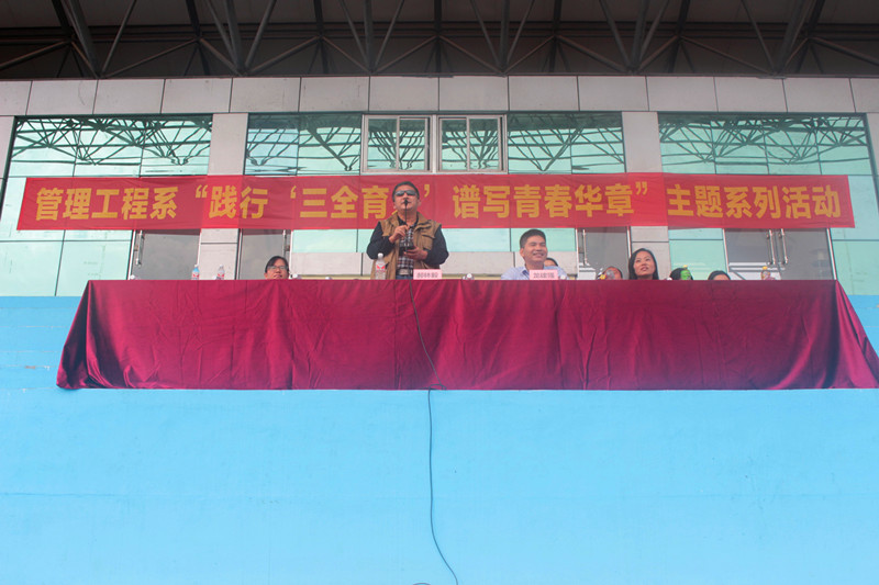 (管理工程系讯 蒋波、王丹丹/文/图)为进一步推进实践育人、文化育人和资助育人,深入贯彻落实学院“三全育人”总体部署和要求,12月22日,管理工程系“践行‘三全育人’谱写青春华章”主题系列活动在昆仑校区田径运动场顺利举行,系主任郝林毅、党总支书记龙建强出席本次活动,学生干事、辅导员、班主任老师及全体在校学生到场参加了活动。