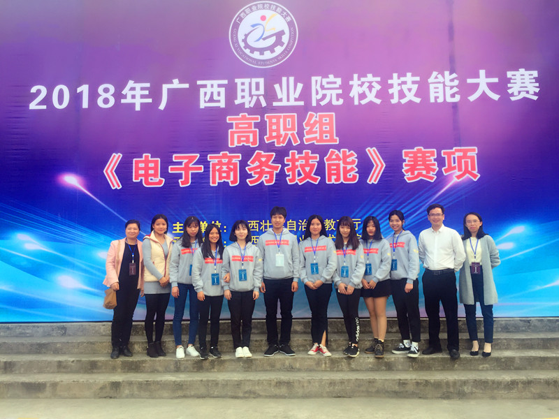 (管理工程系讯李冰/文 陈洁萍/图)3月22日,2018年广西职业院校技能大赛电子商务技能赛项(高职组)在广西经贸职业技术学院举行。我院管理工程系经过赛前精心组织,共派出两支参赛队参加比赛。其中罗淑琼、宣翠莲、李冰乾、高霜四位同学组成的参赛队在本次比赛中稳定发挥,荣获二等奖;指导老师李冰、唐小翠两名老师荣获“优秀指导教师”荣誉称号。