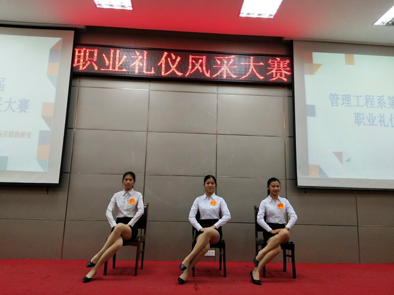 (管理工程系 讯 梁文/文 陈飞霞/图)1月5日,以“展现礼仪风采、提升综合素质”为主题的人力资源管理专业职场礼仪风采技能大赛在综合教学楼C2多功能厅成功举办。到场观赛的有人力资源管理专业2016级、2017级学生和市场营销专业2017级学生,人力与市场营销教研室陈飞霞老师、莫小佳老师、梁文老师和段成龙老师到场担任评委。