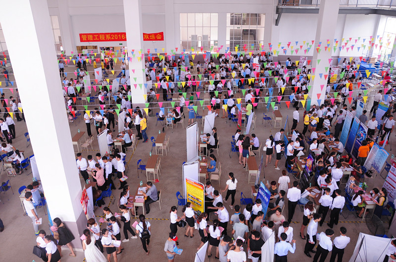 (管理工程系 讯 蒋波/文 钟德明/图)激情六月,骄阳似火,酷热的就业季,求职的热潮一浪紧接一浪。6月7日,经过系部精心筹划,在招生就业处、后勤保卫处等职能部门的鼎力支持和通力配合下,我系第四届校园双选会在四塘校区管理楼一楼物流实训基地成功举办,现场气氛十分火爆。