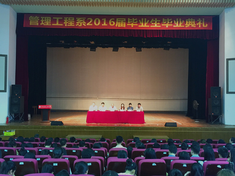 (管理工程系 讯 蒋波/文/图)7月1日上午9:00点,在举国上下热烈庆祝党的九十五华诞之际,管理工程系2016届毕业生毕业典礼在园湖校区大礼堂隆重举行。管理工程系全体毕业生汇聚一堂,告别交院青春记忆,即将开启新的人生征程。学院副院长黄琼念、招就处处长何江霞、学工处处长莫跃宁、教务处处长罗小青、系主任郝林毅、系党总支副书记龙建强、系部部分教师代表莅临出席。
