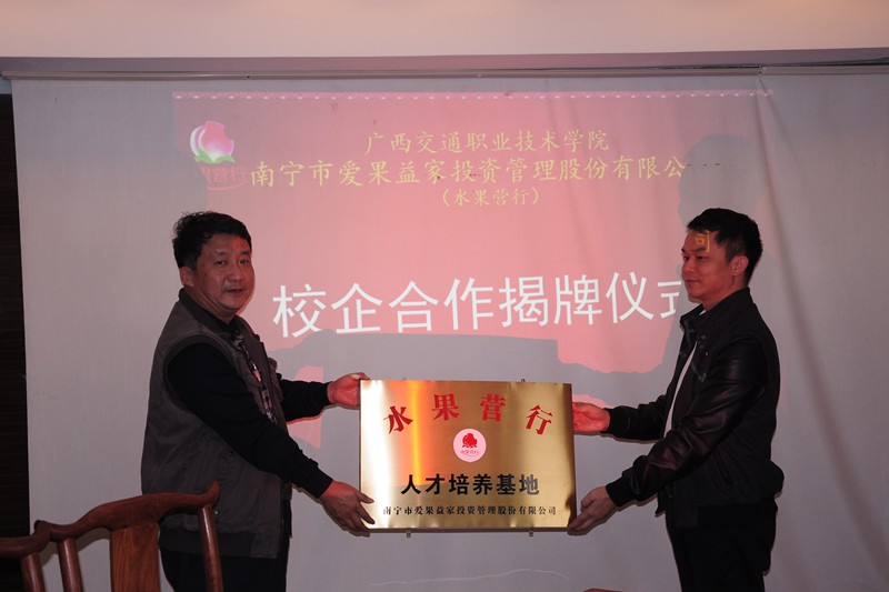 座谈会后,双方出席了校企合作实习实训基地揭牌仪式和“水果营行”人才培养基地授扁仪式。