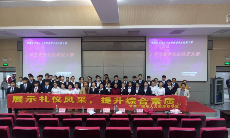 12月1日,管理工程系人力资源管理专业第二届职业礼仪大赛在C2多功能厅举行。参赛选手以人力资源管理专业学生为主,共有12队参赛。人力资源管理教研室主任贲绍云老师、黄福秀老师、耿兴云老师担任比赛评委。2014级、2015级人力资源管理专业学生到场观赛。