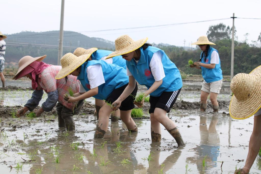 全体师生深入田间,切身体会插秧、抛秧,识别和运用基础农具开展体验式耕种。学院市场营销专业和商务管理专业同学充分发挥专业所长,开展同步直播,累计约2300人次线上观看,收获上万次点赞及上百条评论。