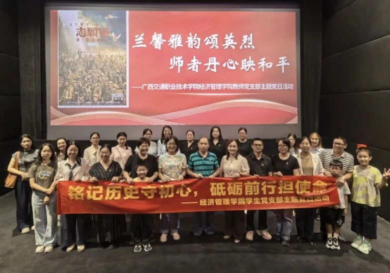 为深切缅怀革命先烈,弘扬伟大抗美援朝精神,进一步激发教职工的爱国热情与奋斗意志,2025年10月17日晚,经济管理学院教师党支部在青秀万达电影院组织开展了以“兰馨雅韵颂英烈,师者丹心映和平”为主题的十月主题党日活动,集体观看了爱国主义题材影片《志愿军:浴血和平》。
