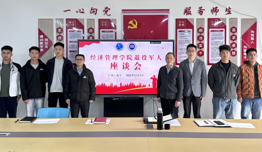 为扎实做好退役军人服务保障工作,全面了解退役军人的思想动态、学习和生活情况,进一步提升退役军人的归属感、获得感和幸福感,12月3日,广西交通职业技术学院经济管理学院(以下简称“学院”)召开在校就读退役军人座谈会,学院党总支书记张小健出席并讲话,党总支副书记孙坚主持会议,在校就读退役军人及学工办负责人、相关辅导员参加会议。