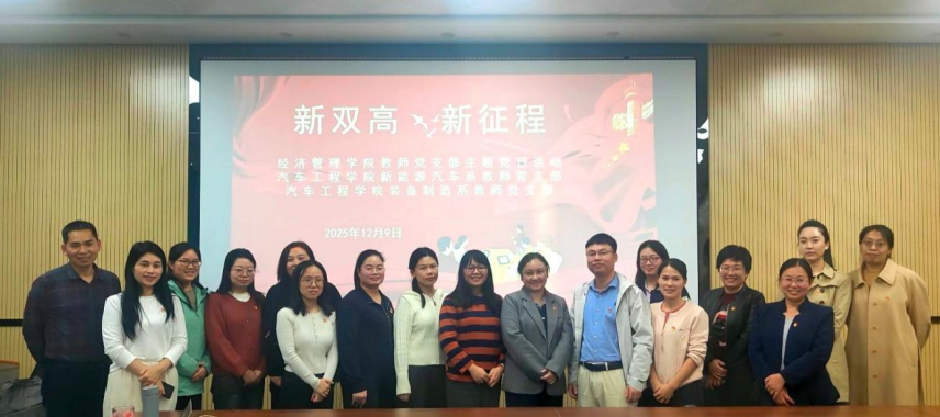 为深入贯彻党的二十届四中全会精神,充分发挥党建引领作用,推动党建工作与专业建设深度融合,12月9日下午,经济管理学院财贸系教师党支部联合汽车工程学院新能源汽车系教师党支部、汽车工程学院装备制造系教师党支部在汽车楼706会议室组织开展了以“新双高·新征程”为主题的党日活动,支部全体党员教师及专任教师代表共同参加了本次活动。