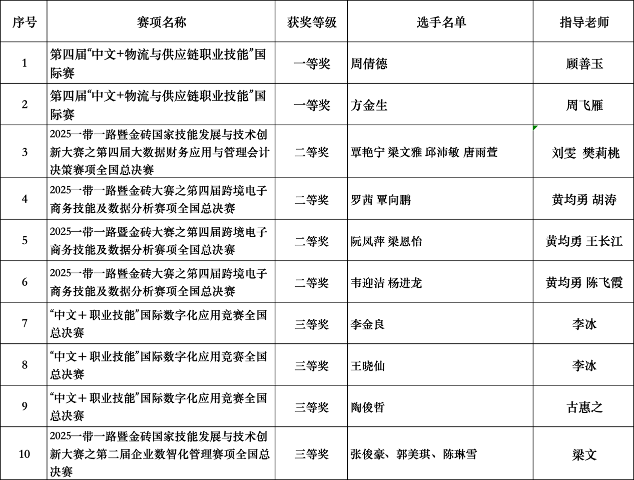 近日,2025年一带一路暨金砖国家技能发展与技术创新大赛圆满落幕,经济管理学院师生在教师赛和学生赛中双双发力、捷报频传,多名教师和学生团队凭借扎实的专业功底、创新的实践能力脱颖而出,荣获一等奖2项、二等奖7项、三等奖5项!这份亮眼成绩的背后,是学院教师党支部深耕党建与业务融合,以赛促教、以赛育人的生动实践。