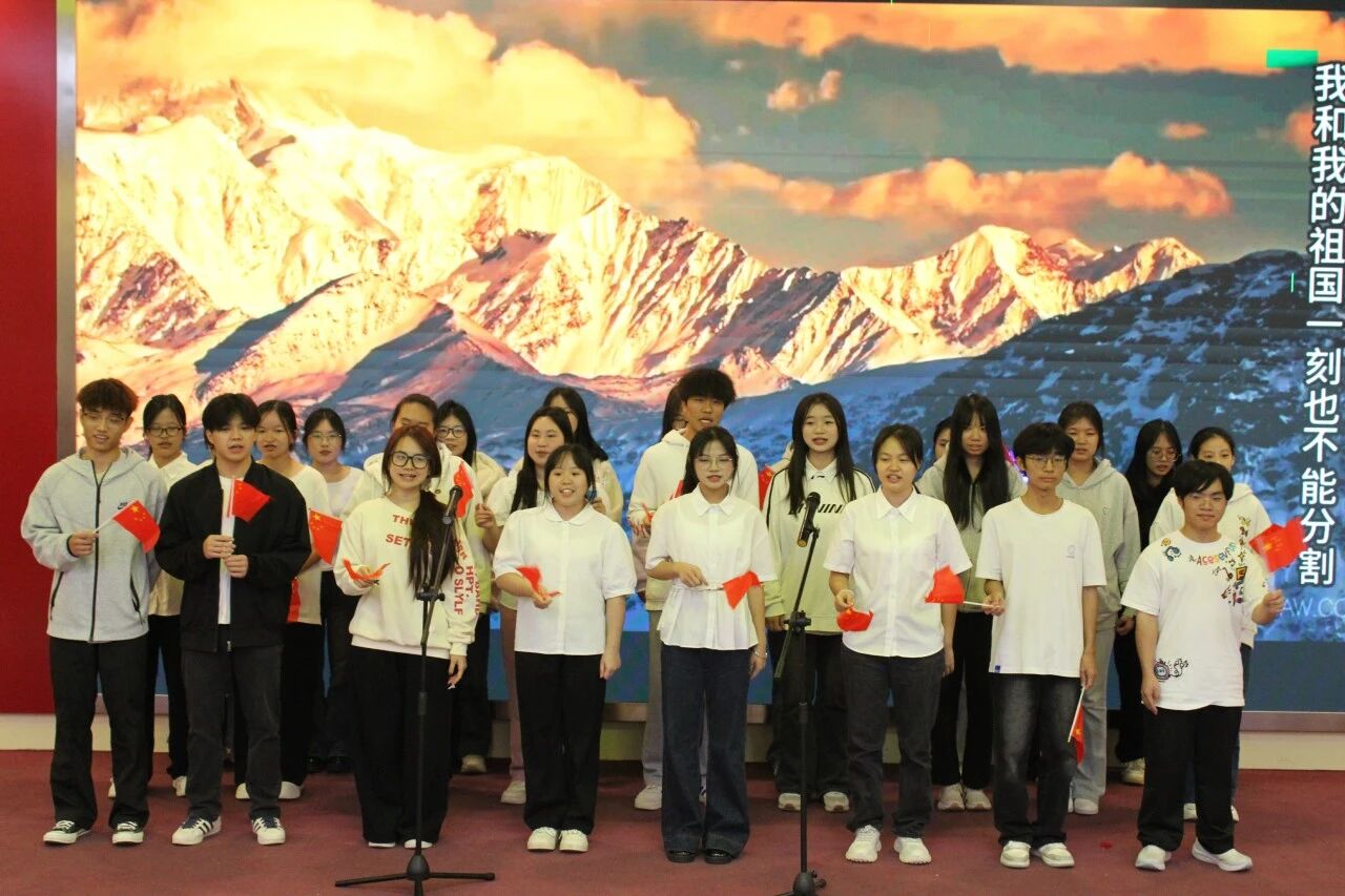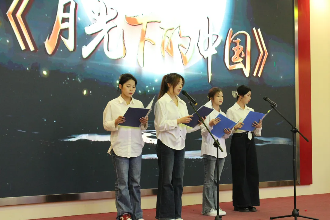 第三篇章潮涌新程·共赴山海以家国情怀与新程期许为核心,将晚会情感推向高潮。朗诵《我的祖国》字字赤诚,抒发新时代青年对祖国的无限热爱与责任担当。《我和我的祖国》旋律响起,全场师生齐声合唱,浓浓家国情怀在报告厅久久回荡。合唱《时间煮雨》《小美满》温情收尾,在舒缓旋律中寄托对过往的回望与对新年的美好期许。