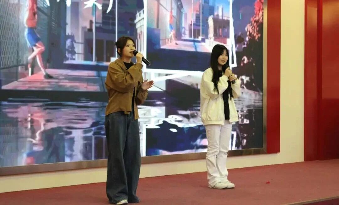 第一篇章以经纬织梦·风华正茂为主题,尽显经英青春朝气与多元风貌。朗诵《这盛世如你所愿》字字铿锵,将家国礼赞与青年担当融入真挚语调。独唱《天地龙鳞》国风旋律大气磅礴,引发现场阵阵掌声。合唱《Always online》轻快旋律唤起青春共鸣,校园生活鲜活气息迎面而来。独唱《房间》温柔声线包裹细腻情绪,让现场陷入温馨氛围。小品《谁杀死了周日》贴近日常,在欢声笑语中传递珍惜时光的成长思考。