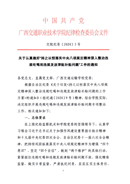 交院纪委〔2020〕5号 关于认真做好“持之以恒落实中央八项规定精神深入整治违规吃喝和违规发放津贴问题”工作的通知