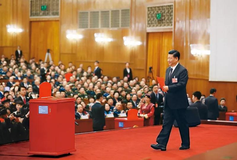 2018年3月17日,十三届全国人大一次会议在北京人民大会堂举行第五次全体会议。习近平当选中华人民共和国主席、中华人民共和国中央军事委员会主席。这是习近平准备投票。新华社记者