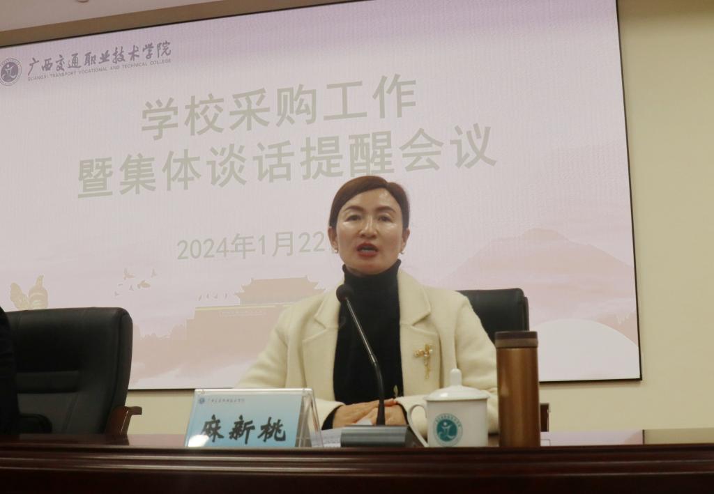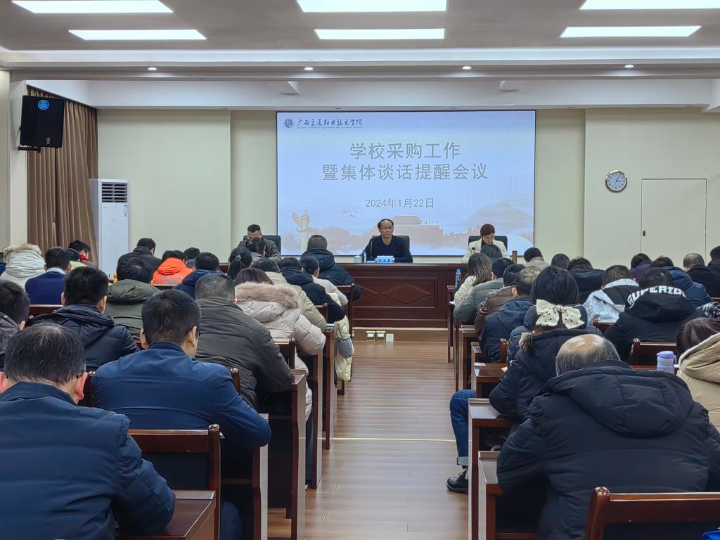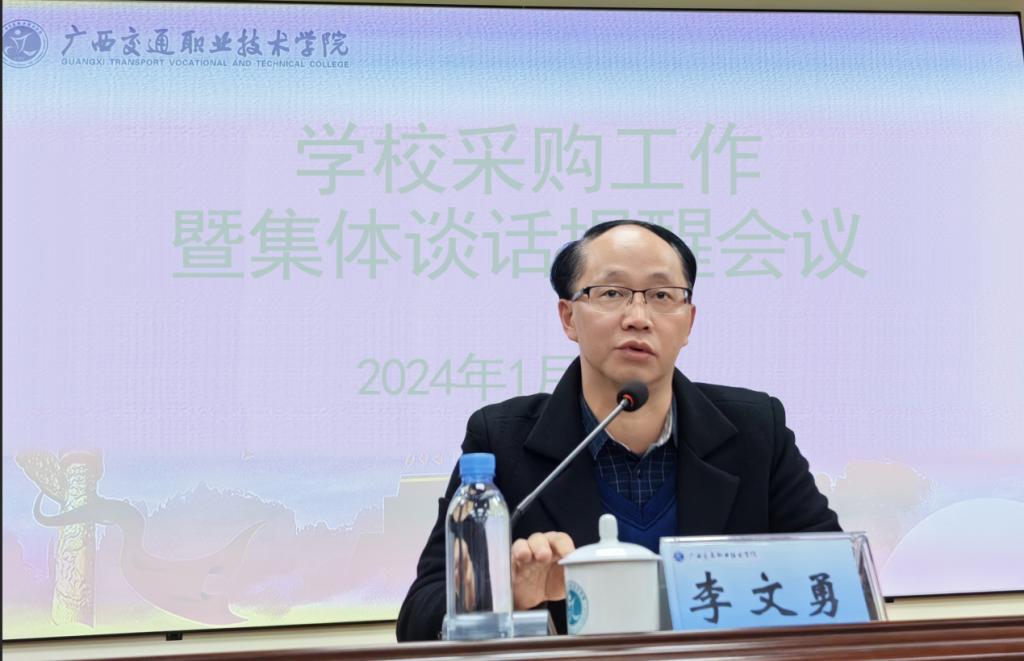 (纪委办公室、纪检监察室 讯)为提高2024年度采购工作质效,确保2024年学校预算执行进度,强化学校采购等重点领域廉政风险防控和制度执行,推进清廉交院建设提质增效,1月22日下午,我校在园湖校区召开采购工作暨集体谈话提醒会议,李文勇校长出席会议并讲话。
