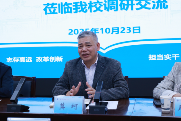 (纪委办公室 讯 陈思如/文)10月23日下午,广西师范大学党委副书记、自治区纪委监委驻广西师范大学纪检监察组组长莫坷一行6人到我校昆仑校区,调研交流清廉学校建设、“育路廉行”品牌建设等工作。学校党委书记陈湘如,党委副书记、纪委书记麻新桃陪同调研并参加座谈。