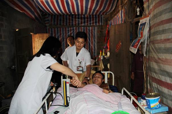2016年起,围绕精准扶贫、健康扶贫,志愿服务队的医护工作者与400多名因病致贫的建卡贫困户结对帮扶。结对医生坚持“一对一”免费上门服务,有针对性地制定治疗和帮扶方案,为患病人员建立健康档案,张贴帮扶公示牌,坚持长期追踪随访、定期进行免费健康体检等。