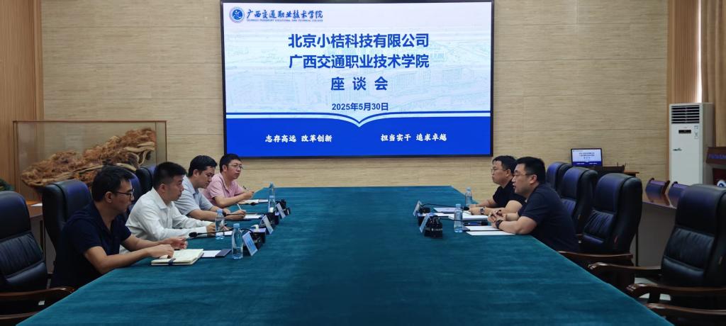 5 月 30 日上午,北京小桔科技有限公司(广西滴滴出行)总监苏源富一行到访我校开展调研交流,学校副校长、广西低空交通创新应用中心管理委员会常务副主任邱实、交通运输学院副院长邵泊洋及相关人员出席调研座谈会。