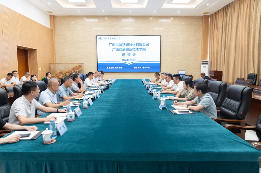 6月20日下午,广西沿海铁路股份有限公司党委书记、董事长匡代轩、副总经理罗庆龙一行到访我校开展交流活动并签署战略合作协议。学校党委书记陈湘如、副校长邱实、各二级学院代表出席签约仪式。