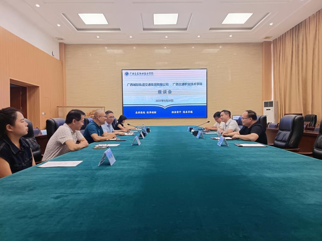 6月26日下午,广西城际轨道交通集团有限公司董事长蒋长城一行到我院开展校企合作调研座谈。学院党总支书记曹斌及相关专业教师参加座谈交流。
