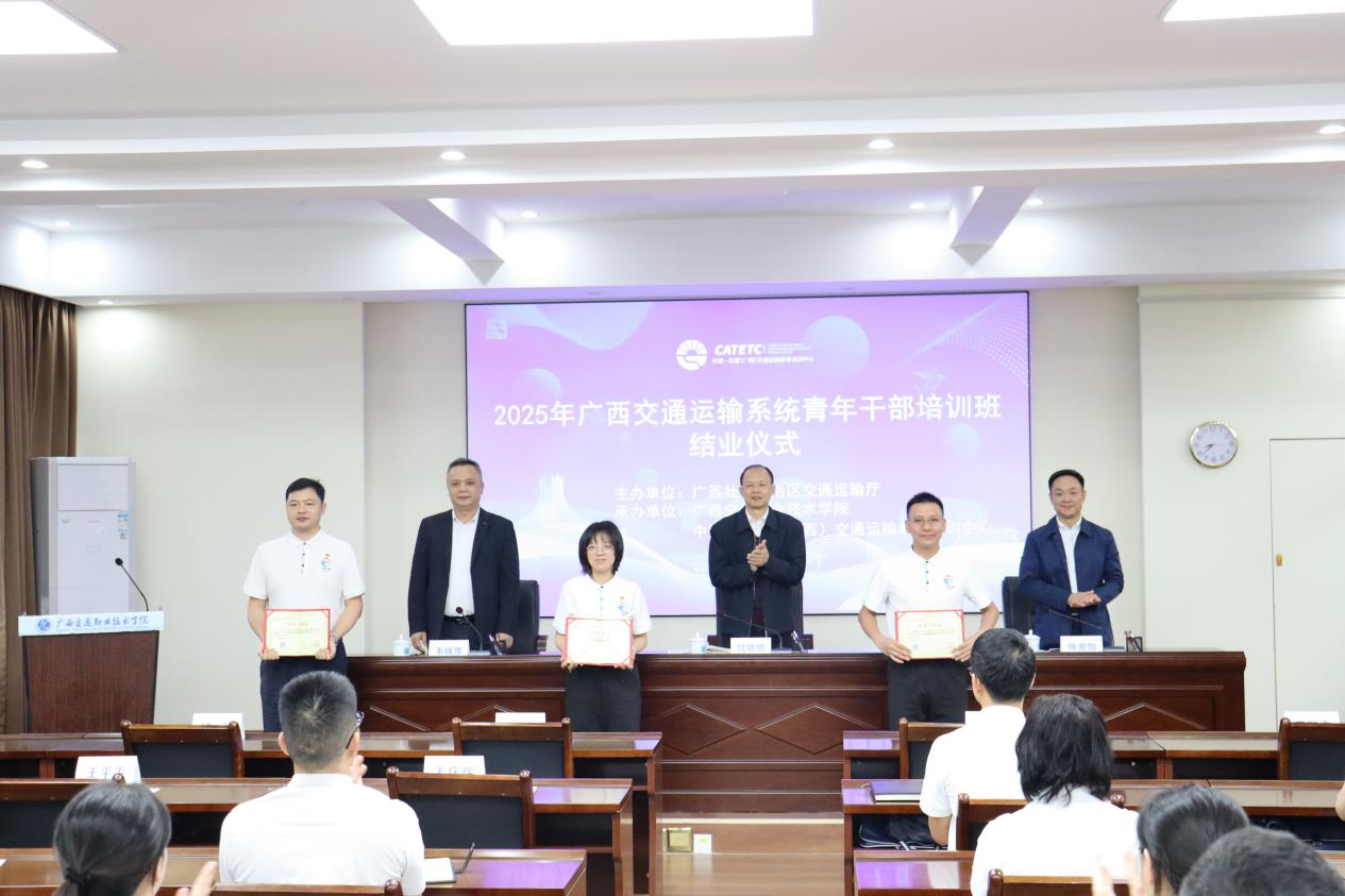 结业仪式上,学校党委书记陈湘如与自治区交通运输厅领导一同为学员颁发结业证书。广西交通运输系统各单位青年干部,厅直属各单位及机关相关处室负责人参加本次结业仪式。