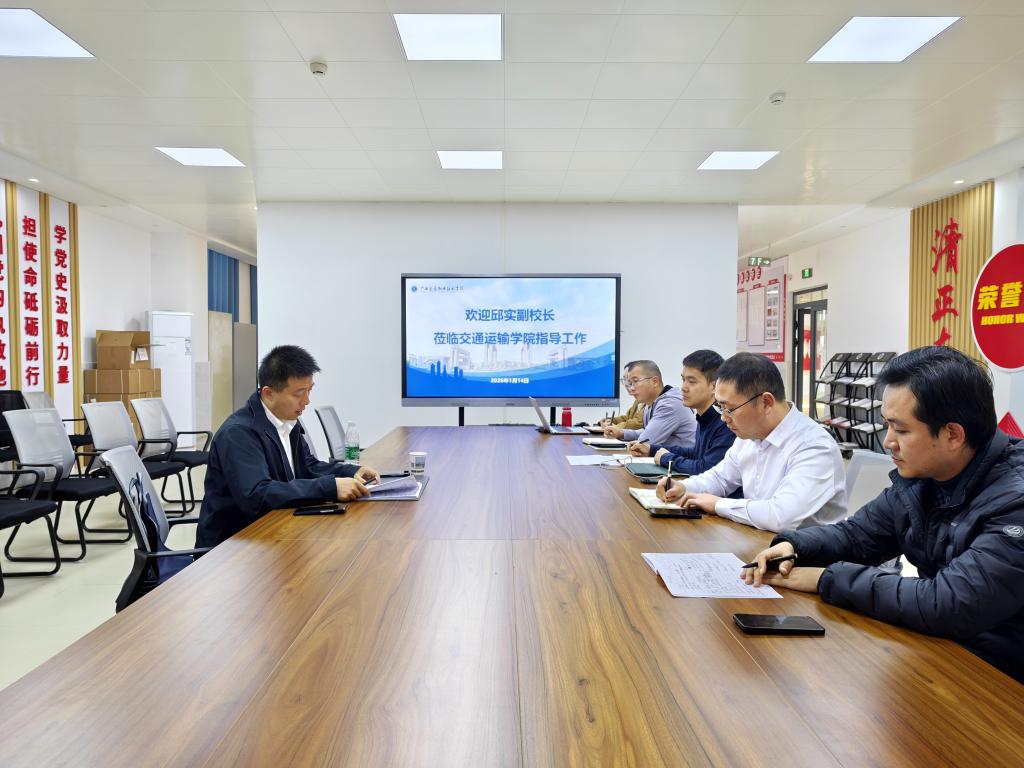 2026年1月14日,学校副校长邱实到交通运输学院开展专题调研,深入了解学院发展规划与工作推进情况,并召开调研座谈会与学院领导班子成员集体廉政谈话。学院领导班子成员、各教学团队负责人参加座谈会。学院副院长(主持工作)黄勇主持会议。