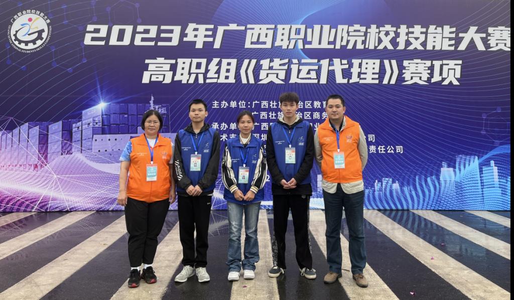 图2.2021级港口与航运管理2班杨龙泉(左二)荣获2022年广西职业院校技能大赛一等奖