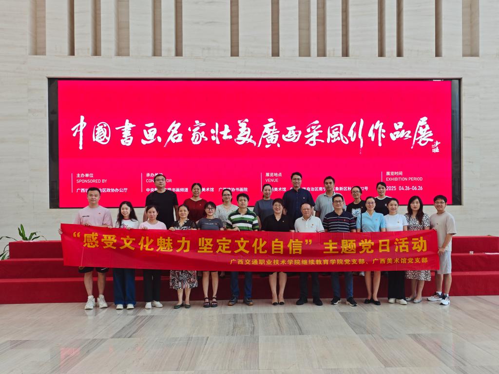 7月9日,继续教育学院党支部与广西美术馆党支部联合开展了以“感受文化魅力 坚定文化自信”为主题的党日活动,在笔墨丹青中领略广西的壮美风光与深厚文化底蕴,感悟新时代壮美广西建设的伟大成就。