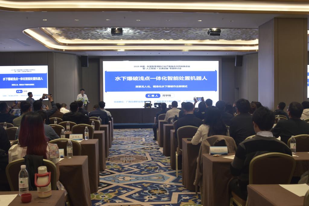 我校周学翔博士发布共同体联合研发的“水下爆破浅点一体化智能处置机器人”,该产品集成人工智能与智能控制技术,有效解决了水下爆破作业效率低、安全风险高等行业难题,为港航工程智能化升级提供了全新解决方案。
