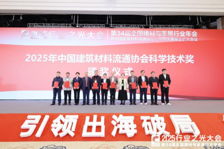 (科技与对外合作部 讯 陈其龙/文)近日,第34届全国建材与家居行业年会暨2025年度中国建筑材料流通协会科学技术奖颁奖大会在广东佛山举行。