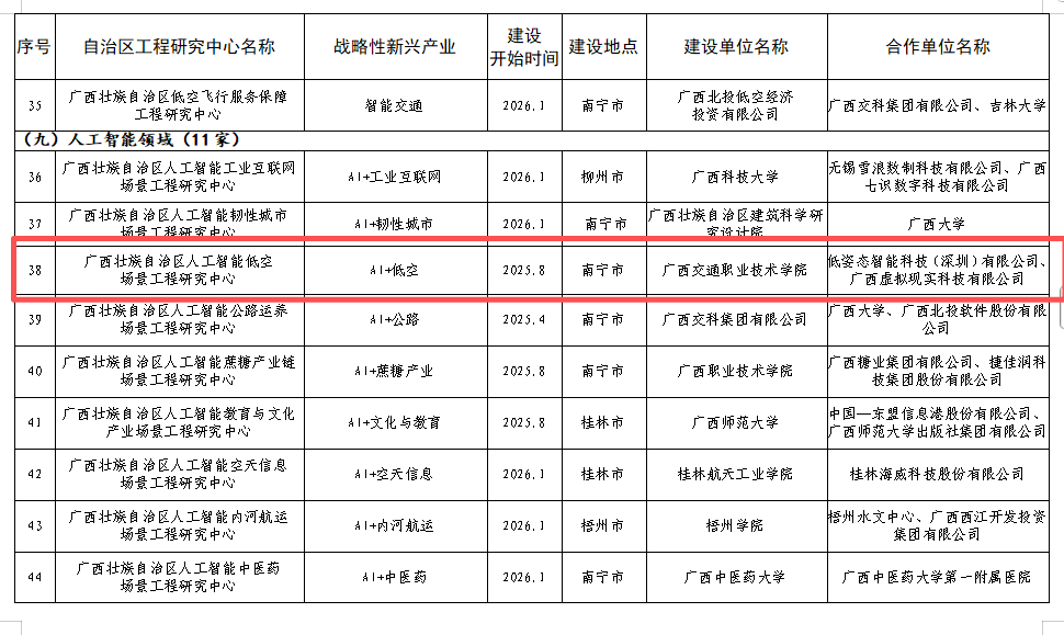 12月19日,自治区发改委印发通知公布2025年度广西工程研究中心认定名单,我校牵头申报的“广西壮族自治区人工智能低空场景工程研究中心”成功获批。这是我校第三个区级工程研究中心,标志着学校高水平科研创新平台建设再获重要突破。