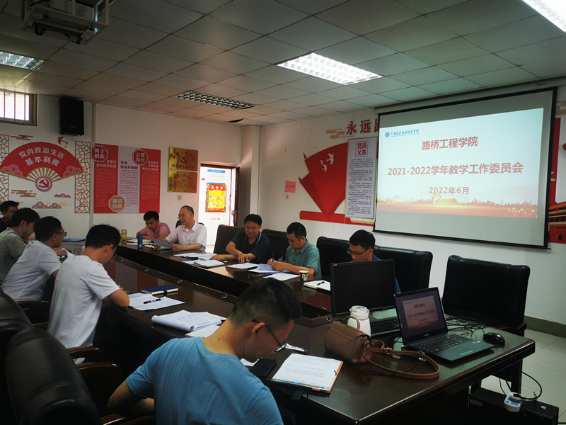 (路桥讯 梁彩芬、张意、黄炯民/文、图)6月6日下午,路桥学院在副楼315会议室召开2022年春季学期第二次教学工作委员会会议。学院院长莫品疆、党总支书记韦秋平,副院长覃峰、蔡广聪、党总支副书记李振成以及学院全体教学工作委员会委员出席会议,会议由覃峰副院长主持。