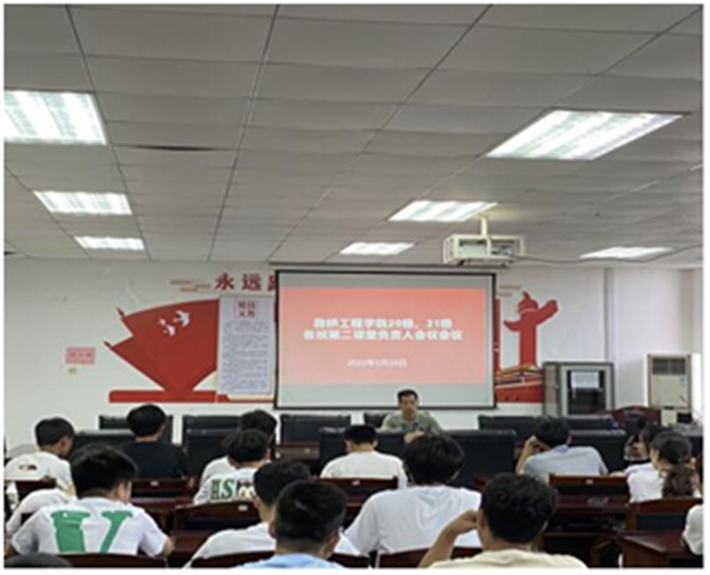 最后,黄炯民老师对学院近期开展的二课活动总结出:二课活动要融入思政教育,旨在促进新时代大学生的德智体美劳“五育”全面发展,磨练学生吃苦耐劳、坚韧不拔、勇于拼搏、团结协作的优秀品质。同时也指出存在的问题:一是各个班级开展活动的积极性有待提高,二是开展的活动内容、活动形式等应有新颖性、吸引力,三是围绕“青年大学习”,依托路桥特色,推进有“两路特色”的二课活动。
