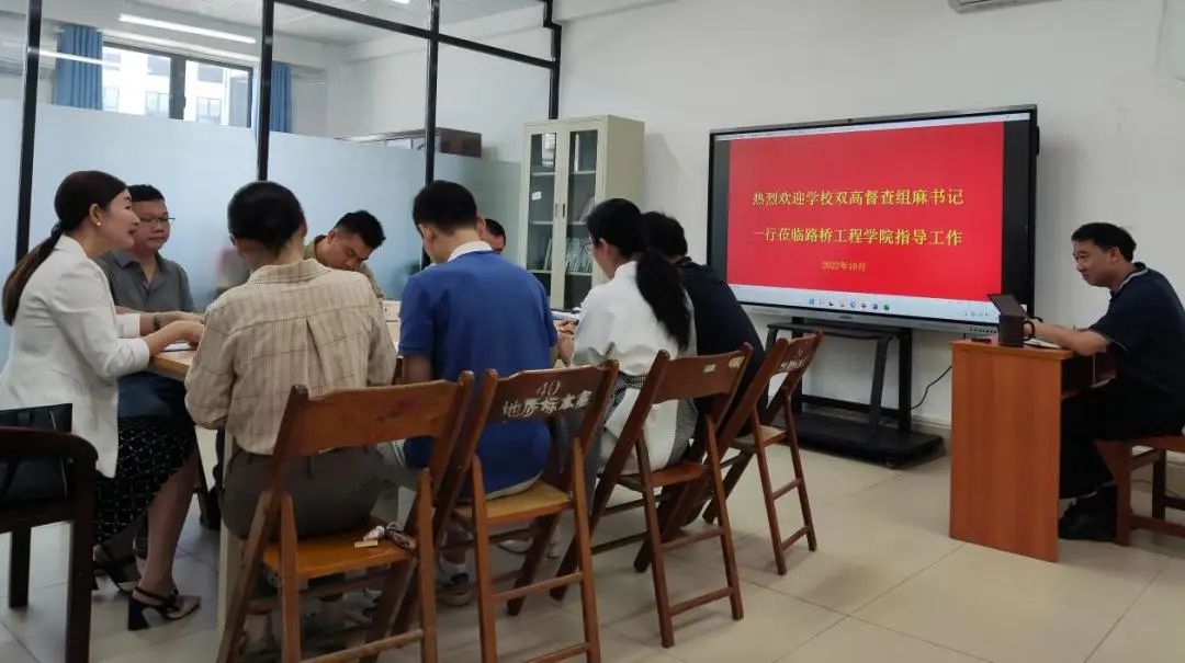 在喜迎二十大召开之际,我院以“双高计划”建设为引领,不断深化改革创新发展,也取得了巨大的进展。为总结“双高”建设任务验收的最后决胜阶段经验,聚焦绩效,瞄准问题,推进下一阶段高质量发展,10月14日上午,学校党委委员、纪委书记麻新桃同志一行深入我院督查指导双高建设终期验收工作,路桥工程学院莫品疆院长、韦秋平书记、覃峰副院长、蔡广聪副院长、李振成副书记等领导班子及各系主任均参与了此次会议。