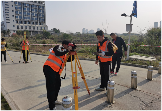 本次《工程测量》赛项竞赛分为二等水准测量、一级导线测量、1:500数字测图三个项目。比赛中,参赛选手沉着应对,依规操作,通过规范、协调、快速、正确地观测记录,进行数据处理,成果计算,以极高的专业素养和扎实的实地操作能力,一路披荆斩棘,最终荣获《工程测量》赛项一等奖。