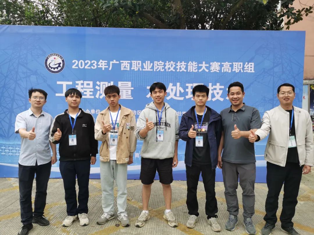 近日,我院在2023年广西职业院校技能大赛中过关斩将,经过激烈的角逐,由学生王宗剑,彭培讯,梁岚耕,劳传存,廖康凯,耿兴帝组成的参赛队在学院领导班子、洪星架老师、郑文诗老师、肖成明老师、吴章旭老师的指导下,荣获《工程测量》赛项一等奖,《测绘》赛项二等奖,并将代表广西参赛队伍角逐国赛。