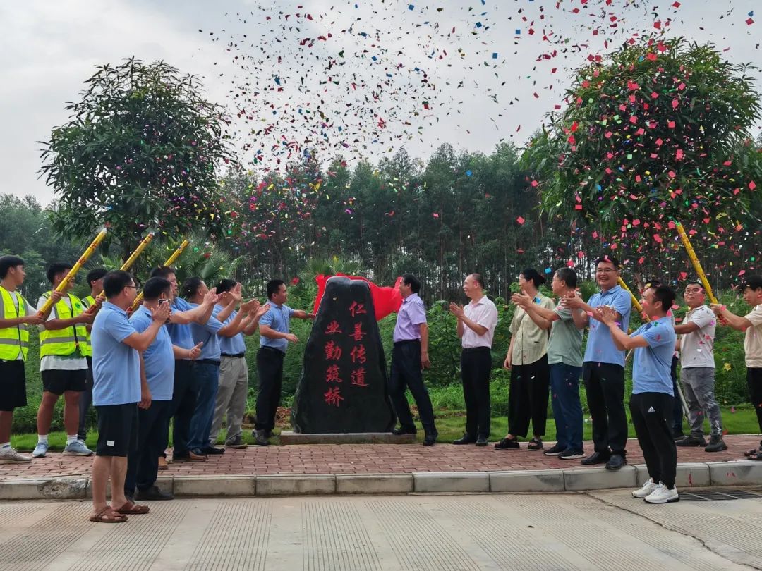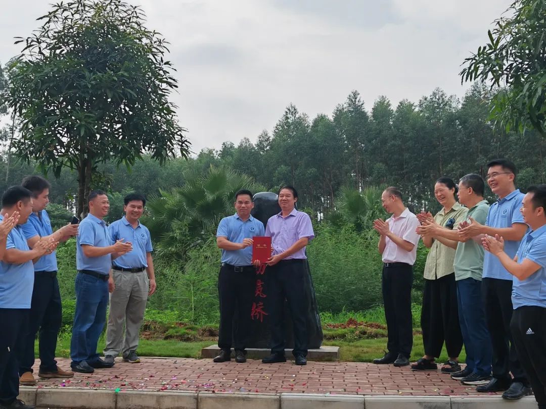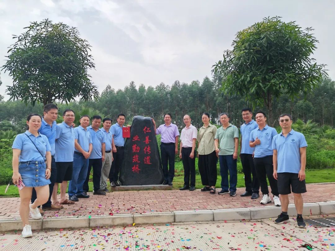 (路桥讯)为感恩母校精心栽培,延续与母校深厚情谊,我院路高2000级2班在毕业20周年之即特为学院捐赠了校友文化石。文化石上“仁善传道•业勤筑桥”字体气势恢宏,激情澎湃,蕴含了校友对母校的款款深情。8月19日,路高2000-2班校友代表齐聚学院大楼门前为“仁善传道•业勤筑桥”文化石举行了简短而热烈的揭幕仪式,学院莫品疆院长、学校科技与对外服务部副主任(主持工作)覃峰、学院教师代表、路高 2000-2班校友代表、在校生代表参加了揭幕仪式。