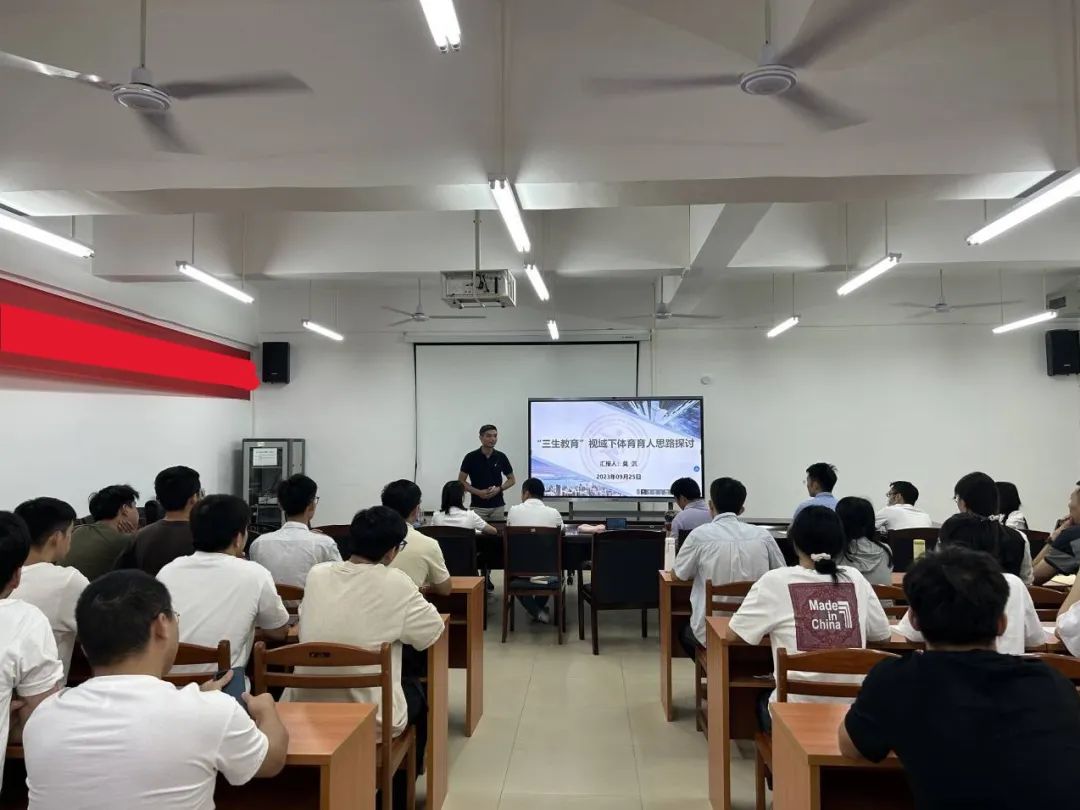 (路桥讯)为进一步提高路桥工程学院学生工作队伍业务能力水平和实践能力,促进学院体育育人的高质量提升。9月25日,路桥工程学院邀请体育教学部书记莫沉副教授为学院全体辅导员及学生代表开展题为《“三生教育”视域下体育育人思路探讨》的讲座,讲座由学院党总支李振成副书记主持。