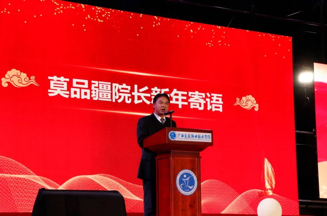 晚会伊始,学院举行了简短且庄重的纪念毛泽东同志诞辰130周年仪式并由学院领导班子成员朗诵毛泽东同志的诗词以表达缅怀之情。随后,莫品疆院长代表学院致辞,他首先向路桥学院全体师生致以诚挚的问候和新年的祝福,并向一年来辛勤工作的教师表示衷心的感谢。莫品疆院长回顾总结了一年来学院在党建、教学、科研、学生工作等方面取得的成绩,并勉励全体师生心中有家国天下、眼底揽万千气象、笔下写纵横乾坤,在新的一年里扬起创新的风帆,荡起智慧的双桨,迎着朝阳,向着“国家双高”、“职业本科”,扬帆起航。