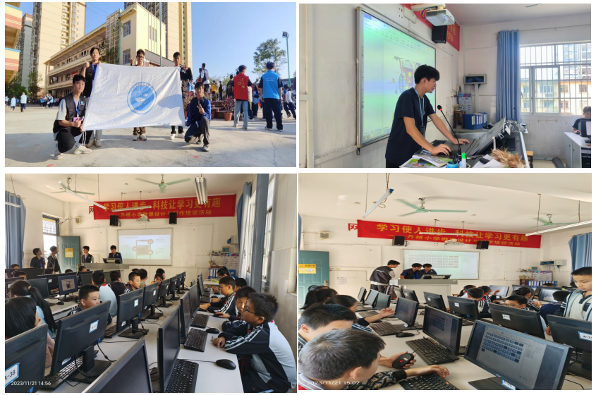 丹桥小学支教活动:协会每学期定期去丹桥小学支教,帮助那里的孩子们了解工程信息化技术,在小朋友心中播撒下科技强国,科技振乡的种子。