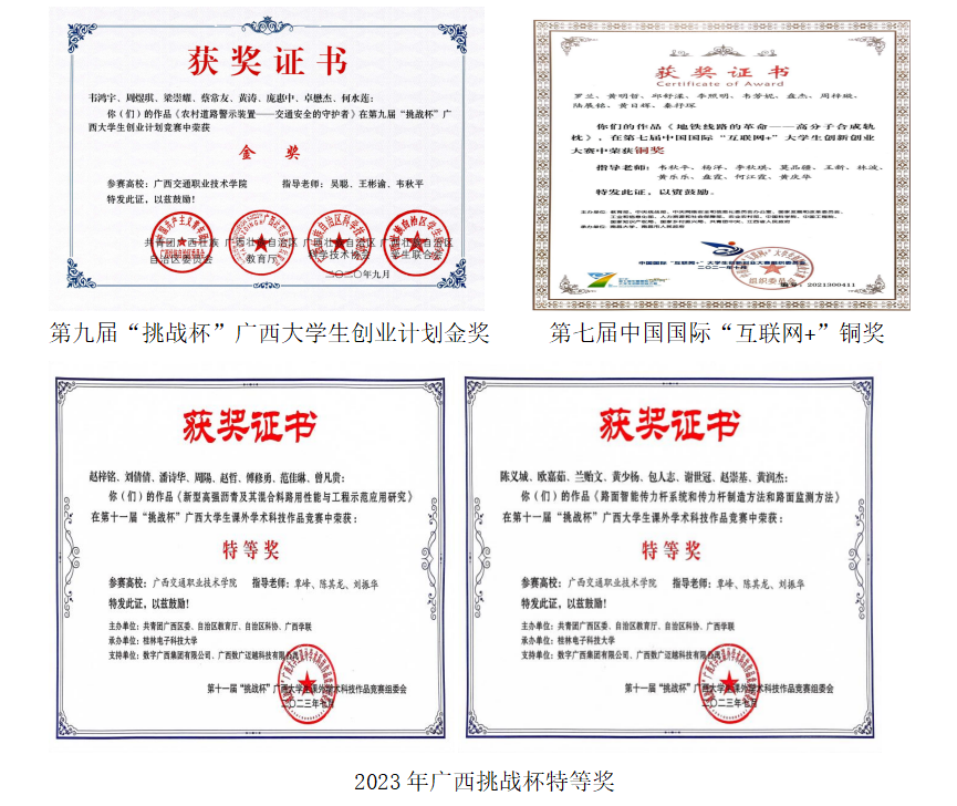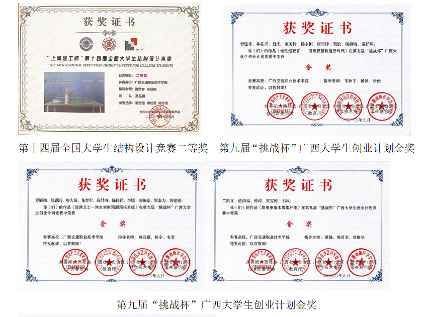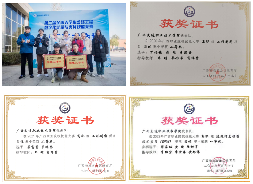 组织协会成员参加专业技能竞赛,获得先进数字化成图竞赛、公路工程数字化计量与支付技能竞赛获得区赛二等奖以上8项,国赛三等奖以上6项,向国内同类院校展示了广西交通职业技术学院的风采。