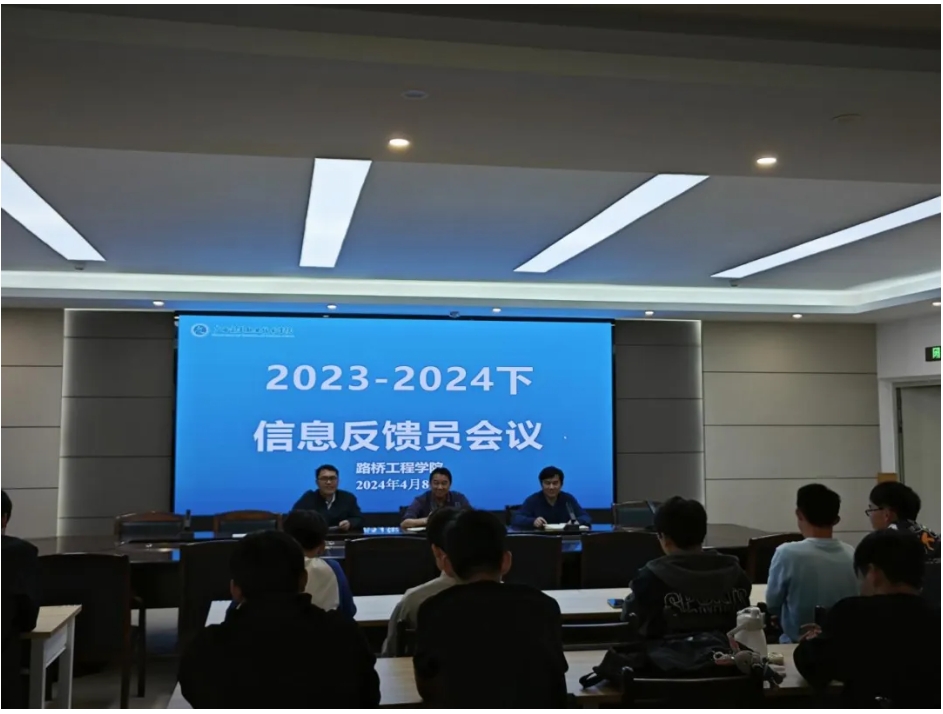 (路桥讯)为进一步落实意识形态责任制和加强教学质量监控,及时了解学生对人才培养的基本要求及对各教学环节的意见和建议,路桥工程学院于4月8日在路桥楼519会议室召开2023-2024学下学期学生信息反馈员会议。学院院长莫品疆、学院党总支副书记李振成、教学管理办公室及2022、2023级各班的信息反馈员、学习委员参加会议。会议由学院副院长严世涛主持。
