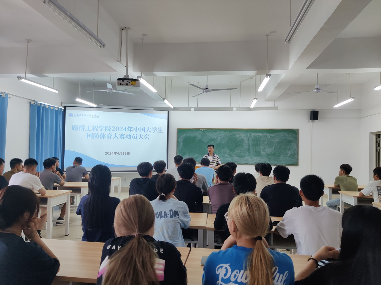 (路桥讯)在中国大学生国防体育大赛来临之际,为充分调动运动员的热情,激发同学们热爱国防、关心国防、支持国防的积极性,同时培养同学们团结协作、敢于担当的精神风貌,学院高度重视,积极宣传、严格选拔、努力备战;并于4月19日组织召开全院大学生国防体育竞赛动员大会,学院副书记李振成老师出席会议,退役军人体育团指导教师、各班退役军人大学生参加会议。
