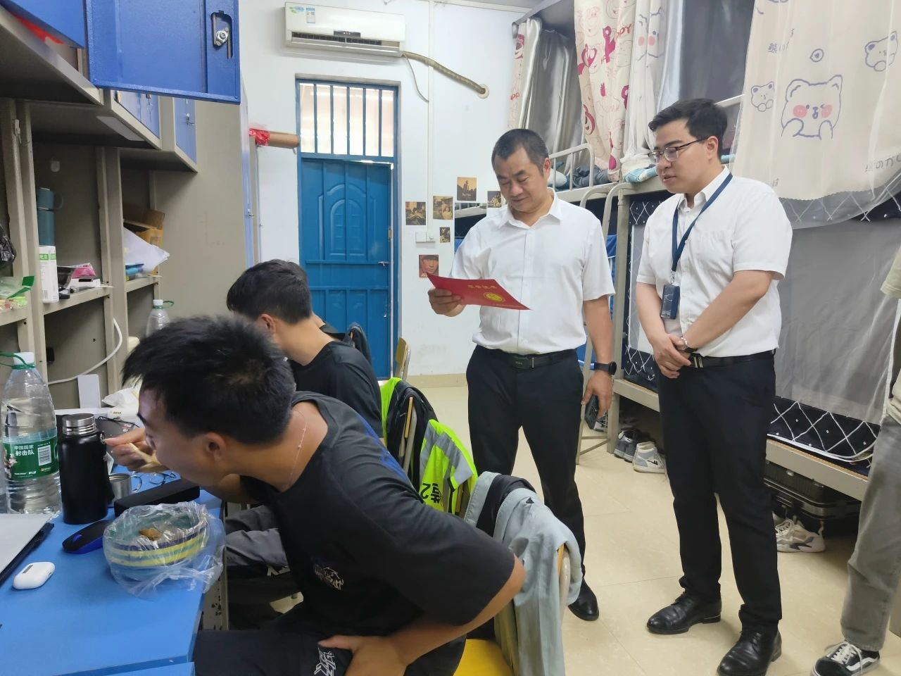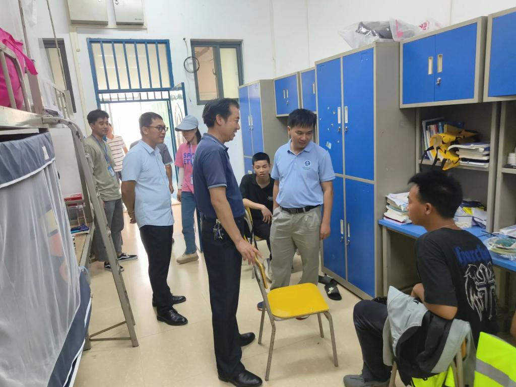 学院副院长蔡广聪带领全体实训中心教师对实训场所进行安全排查。学院副书记李振成、副院长严世涛、杨洋参加宿舍走访和检查。