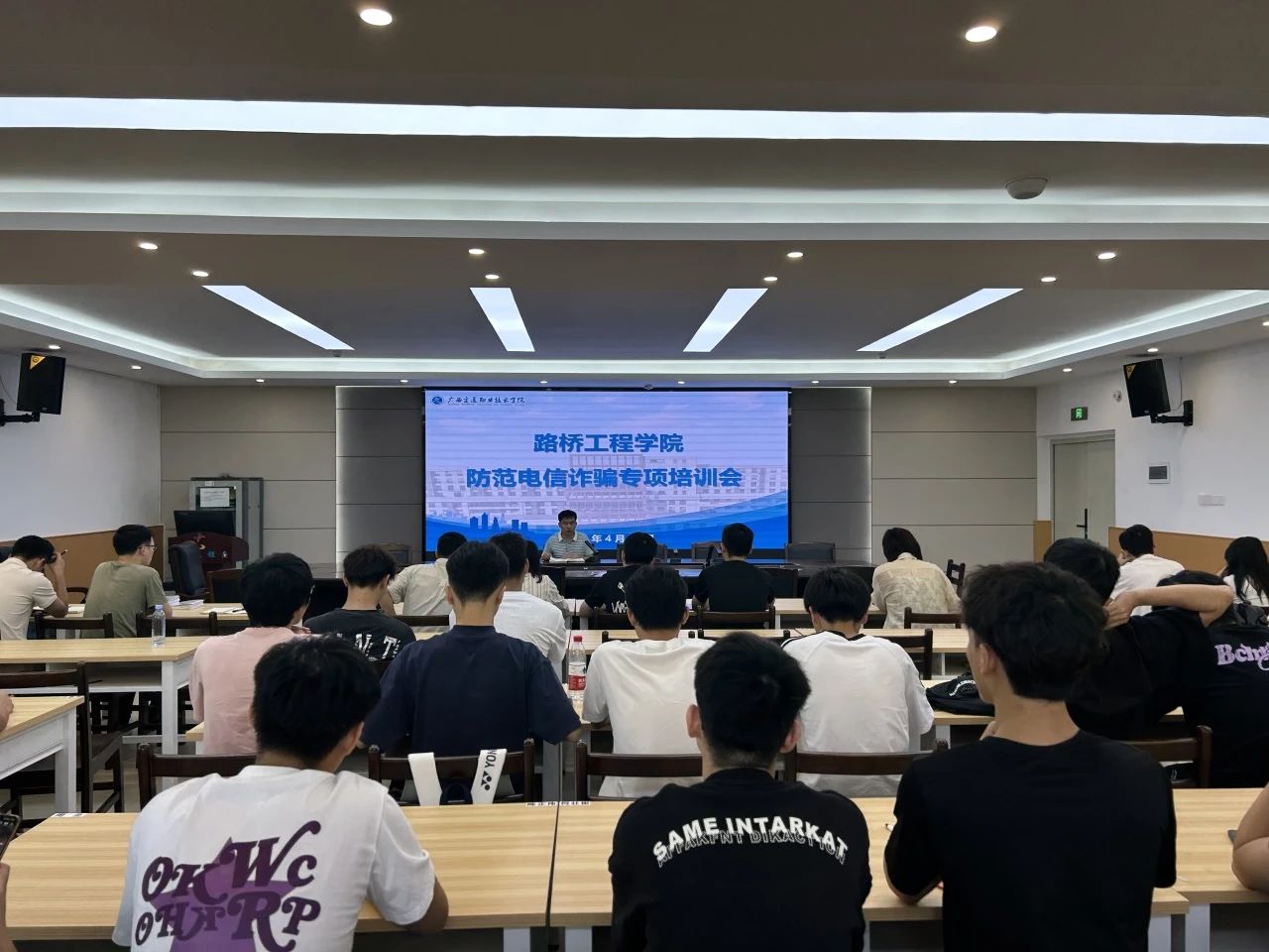 (路桥讯)为进一步提高学生的反诈意识,营造人人识诈、人人反诈的浓厚氛围。4月24日,路桥工程学院在路桥大楼519开展防范电信诈骗专项培训会。学院李振成副书记出席会议,2022级、2023级200余名学生代表和全体辅导员参加会议。