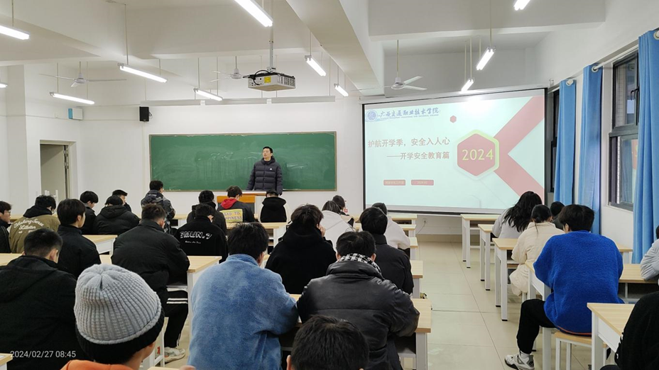 开学第一课上各老师紧紧围绕牢记嘱托、担当作为,做奋力谱写中国式现代化广西篇章时代新人;2023年广西交通成就展;卯足干劲,从“心”出发——开学返校心理调适;护航开学季、安全入人心——开学安全教育等四个主题开展教育活动。
